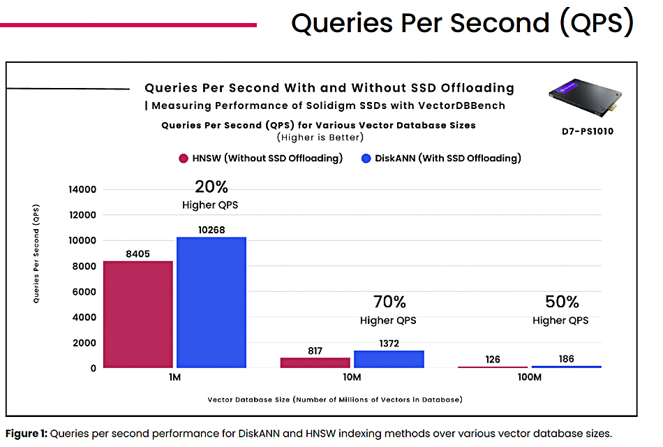 SK hynix NAND fabber and SSD shipper Solidigm has an article talking about how “SSD Offload Techniques Unlock AI Scaling with RAG: Increase Query Speed by 50% Using 57% Less Memory? How Can That Be Right?” It says “Solidigm and Metrum AI have developed a strategy to offload significant amounts of data, including AI model weights and RAG data, from higher-cost memory to high-performance SSDs, unlocking the value of AI like never before.” You can read it and also Download the full white paper: High-Performance TCO-Optimized RAG With SSD Offloading.
