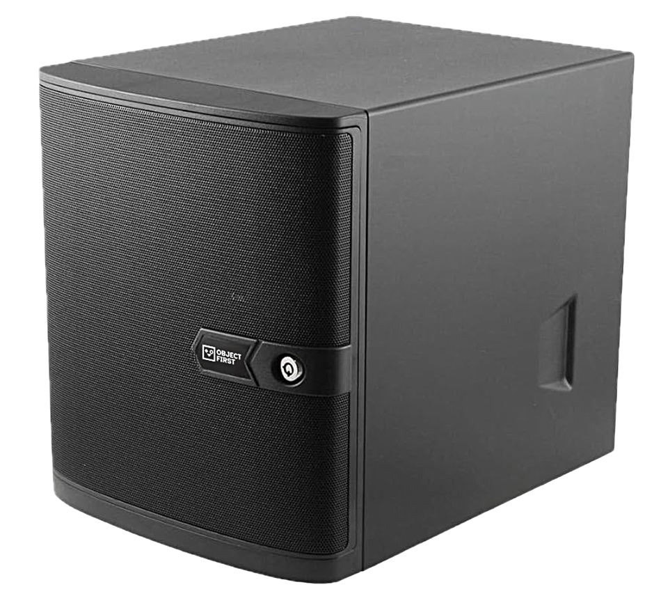 The Ootbi Mini is designed for ROBO (remote and branch offices), edge locations, and small businesses. It comes in a desktop tower form factor, is available in 8, 16, and 24 TB capacities, and can be clustered with other Ootbi Mini appliances. It has a three-disk mirrored array inside, tolerating up to two disk failures without