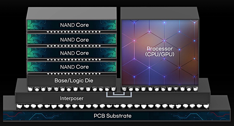 This HBF stack could be co-located with an HBM stack, sharing the same interposer base. SK hynix and Sandisk are working to promote an HBF standard.