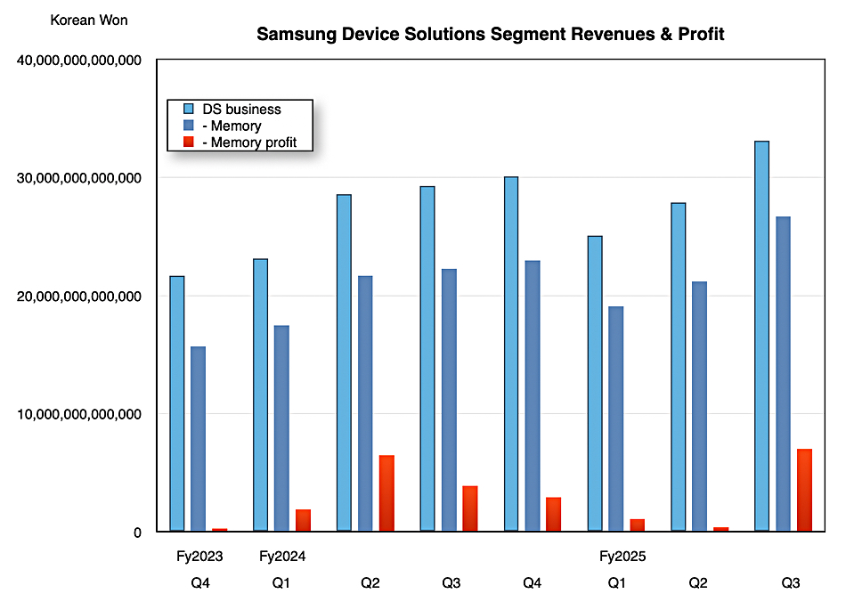 The DS unit’s outlook for the fourth 2025 quarter is basically to make and sell as much of its high value products: HBM3E, 128GB DDR5, 24Gb GDDR7, high-capacity eSSDs – as it can while AI-driven and conventional server demand is as high as it is. HBM4 samples are being shipped to key clients as it looks to ride the Nvidia GPU server memory rocket.