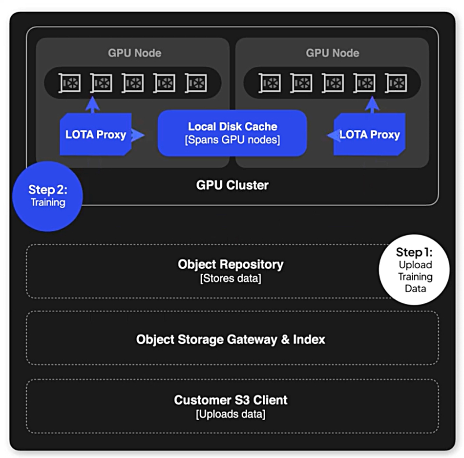 We’re told by CoreWeave that “LOTA proxies all object storage requests to the Object Storage Gateway and storage backend. First, LOTA authenticates each request with the gateway and verifies proper authorization. Then, when possible, LOTA bypasses the gateway and directly accesses the storage backend to fetch objects with the greatest possible throughput. LOTA stores the fetched objects in a distributed cache to significantly boost data transfer rates, especially for repeated data requests.”
