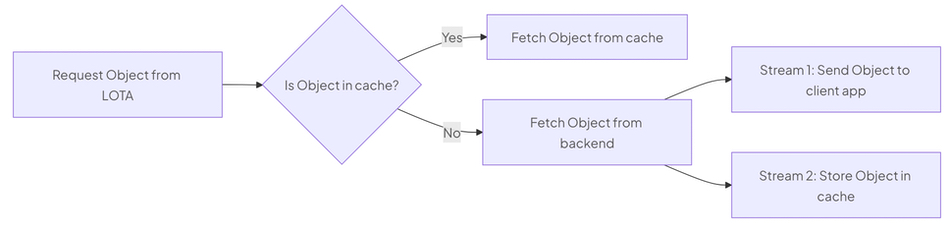 When a request is made to LOTA, it first checks if the object is available in the cache. If the object is found, it’s fetched directly from the cache, ensuring minimal latency.