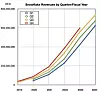 Cloud data warehouser Snowflake announced Q3 fy2024 revenues up 32 percent Y/Y to $734.2 million, with a loss of $214.3 million; it’s still pursuing growth over profitability. The cumulative customer count grew by 370 Q/Q to 8,907. Its headcount is now 6,793, up by 124 Q/Q. The company is growing, as a chart of quarterly revenues by fiscal years indicates: