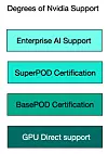 A step up from GPUDirect support is certification for Nvidia’s BasePOD and SuperPOD GPU server systems. Suppliers such as Dell, DDN, Hitachi Vantara, HPE, Huawei, IBM, NetApp, Pure Storage, and VAST have such certifications. Smaller suppliers such as Infinidat, Nexsan, StorONE, and others currently do not hold such certifications.