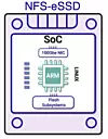 The eSSD is essentially a System-on-chip (SoC) with a Linux storage server, NFS and pNFS in its kernel, running on an Arm CPU, plus a 100 Gbe NIC and QLC flash subsystem.
