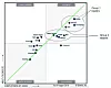 And it’s a doozy. We have added a diagonal green line indicating balanced progress to the top right high-point for ability to execute and completeness of vision. We’ve also indicated two separate groups in the leaders’ box.