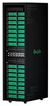 The rear of the rack has a DC busbar and a cabled backplane with blindmated networking. This means self-aligning connectors slide or snap into position as a sled is installed in the rack. There are no power or network cables to plug or unplug.