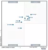 The “Magic Quadrant” is a 2D space defined by axes labeled “Ability To Execute” and “Completeness of Vision,” and split into four squares tagged “Visionaries” and “Niche Players” at the bottom, and “Challengers” and “Leaders” at the top. The best placed vendors are in the top right Leaders box and with a balance between execution ability and vision completion. The nearer they are to the top right corner of that box the better.
