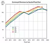 A chart of quarterly revenues by fiscal year shows the revenue flow changes.