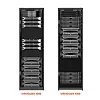 InfiniGuard arrays are preinstalled in a 42U rack with four drive enclosures preconfigured. There are InfiniGuard B4212N and B4260N systems, shipping from April 2021, based on the Infinidat mid-range F4200 array. The B4300s are based on the F4300 InfiniBox – a go-faster F4200 upgrade. Some differences between two now discontinued B4200 products and two B4300 products are listed in the table below: