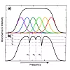 The recording area’s various nanoparticles are set to emit a group of light emission frequencies when excited by a laser beam. These can be viewed as a set of overlapping waves in a spectrum, which collectively have a flat top, (a) in the diagram below.