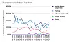 Victim organization size is a factor: “Ransomware attacks most commonly affect small to mid-sized organizations, with companies ranging from 11 to 1,000 employees making up a combined 64 percent of incidents. This suggests that attackers often target firms that are large enough to offer a potential payout but may lack the robust cybersecurity infrastructure of larger enterprises. Mid-sized organizations (1,001 to 10,000 employees) account for 17 percent of attacks, showing that as companies grow, they remain attractive targets.