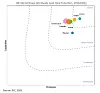 MarketScape explainer: IDC’s MarketScape is a 2D square chart with two axes: Capabilities from low to high on the vertical axis and Strategies (low to high) on the horizontal axis. Suppliers are placed in sections called Leaders, with the highest ratings in capabilities and strategies, Major Players with the next-highest ratings, Contenders with the next highest, and Participants, which has the lowest ratings. A supplier’s spot or bubble on the chart increases in size with their revenue.