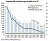 Another Rakers-produced chart, shown below, plots the $/TB price differential between enterprise SSDs and nearline disk drives. It plummets in 2013, falls at a slower rate in 2014, slower still in 2015-2018 and levelled off in 2019. The blue bars in the chart show the SSDs at nine to 10 x the nearline HDD price in 2019 and 2020’s first quarter.