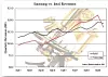 He’s charted the trend in their comparable revenues to show Samsung passing Intel some six quarters ago and now Intel regaining the lead;