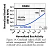 “The Standard DRAM line at the top is nearly flat because DRAM always needs to be refreshed every 64ms (or whatever the specification calls for) no matter how active the bus is. As with the NVDRAM, RFM must be invoked more often when there are more row activations, but its contribution to the overhead is so small (compared to REF) that doesn’t have any real impact on the DRAM line until the very right side of the curve.
