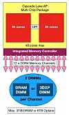 Cascade Lake AP differs from the SP (Standard Procecessor) version by having an integrated memory controller which supports running both DRAM and Optane memory in the same memory structure.