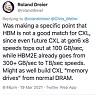 Roland Dreier, a senior staff engineer at Google, has tweeted that “HBM is not a good match for CXL, since even future CXL at gen6 x8 speeds tops out at 100 GB/sec, while HBM2E already goes from 300+ GB/sec to TB/sec speeds.” He suggests the industry could “build CXL “memory drives” from normal DRAM.”