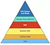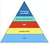 Here is a memory-to-tape hierarchy diagram, presented as a triangle to show that the amount of data grows as you move down-hierarchy, with access latency increasing and cost/bit decreasing in lockstep as you descend this ladder of tiers.